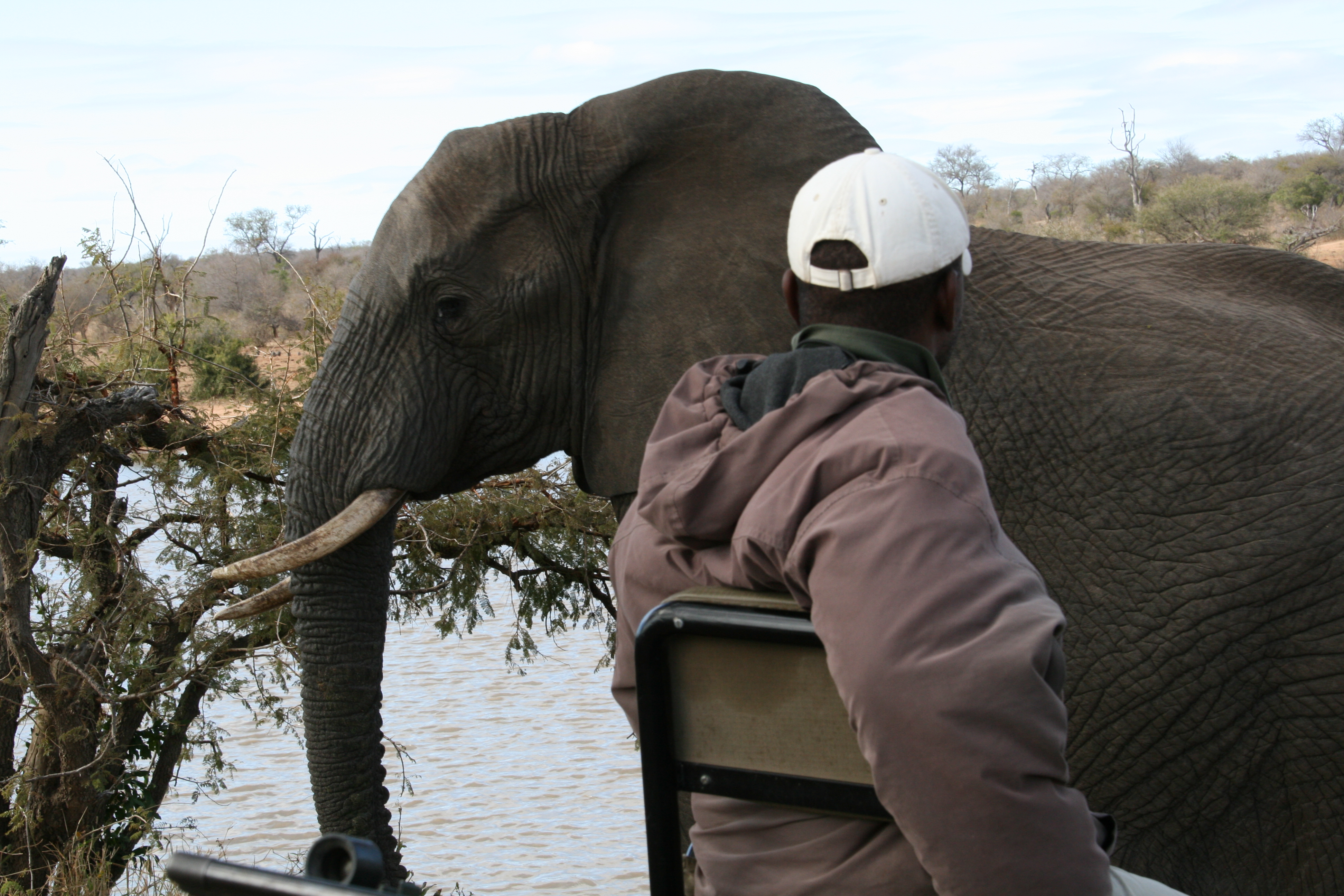 I sat still, my eyes big, watching these powerful animals lumber toward us, grazing the side of our game vehicle, unthreatened, unthreatening, except for the mock charge by one of the young elephants who seemed to scare only himself.