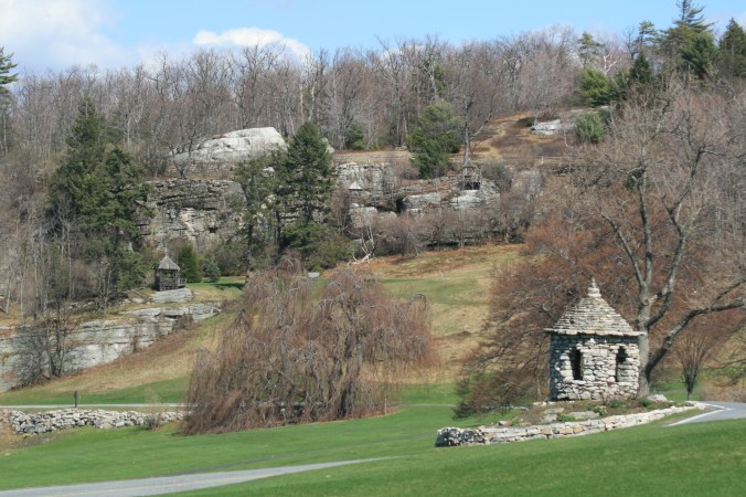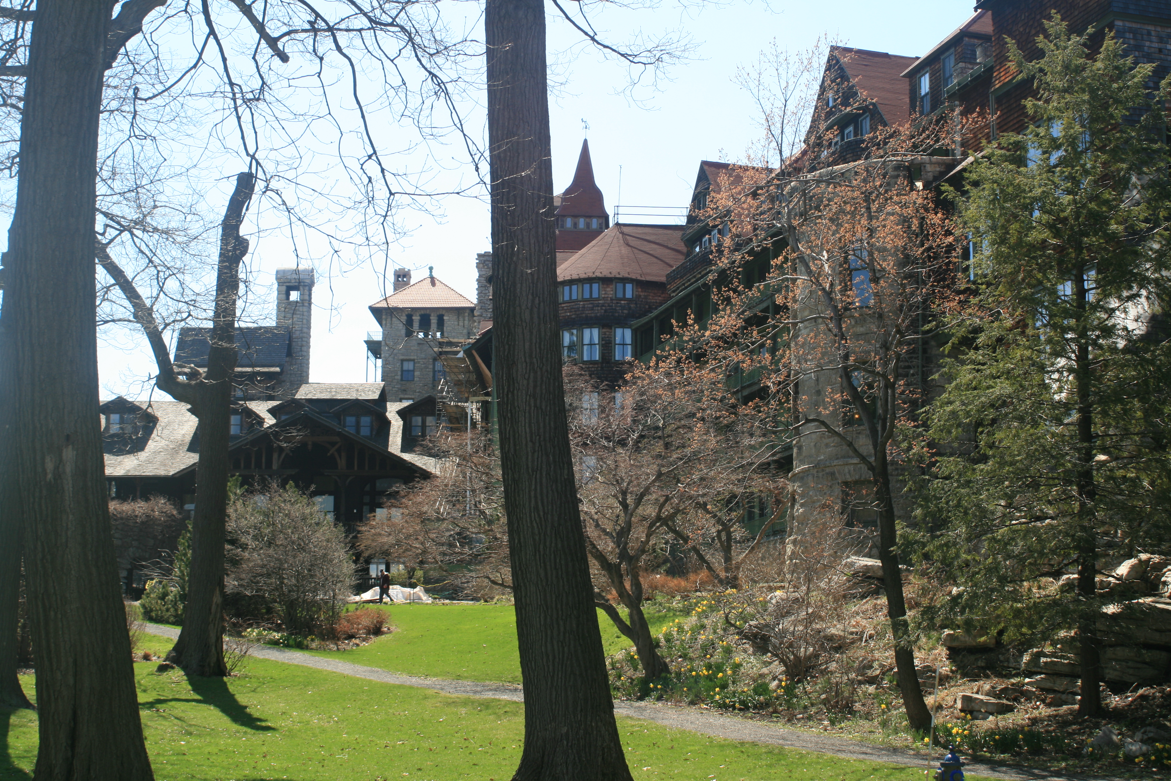 We drove by stone walls and through small colorful towns where buildings on the main streets were painted a variety of bright colors as they paralleled a river. We saw signs for SUNY (State University New York) New Paltz and double backed after taking a wrong turn and up and away from the Catskills toward the Shawangunk Mountains (aka The Gunks) eventually turning up a hill toward Mohonk Mountain House, our destination for the weekend.