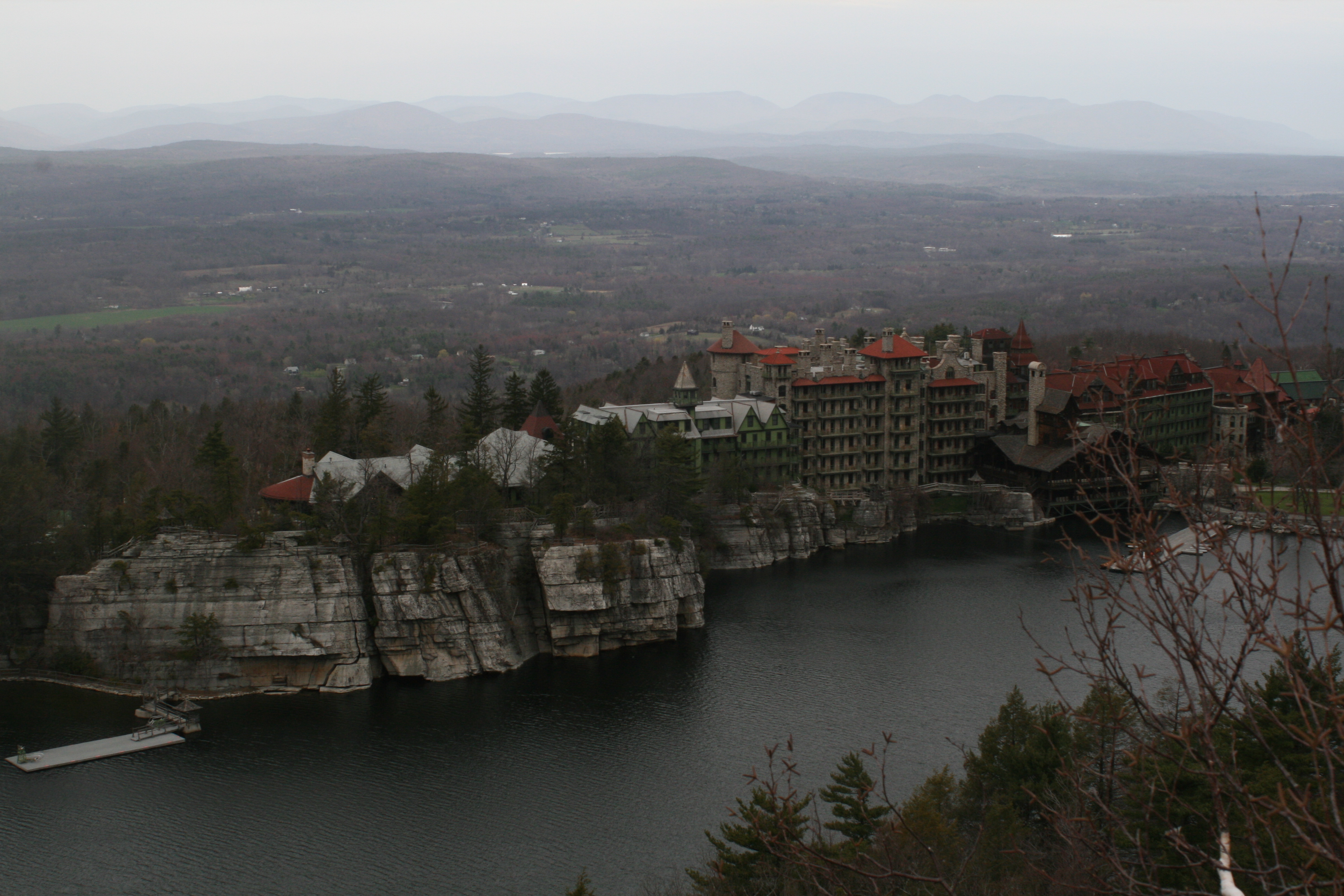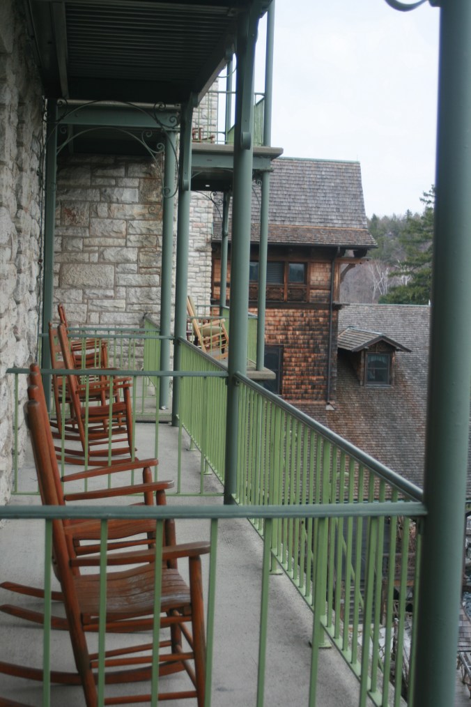 Confirming our reservation at the gate, we continued the drive up the hill, passing trails and a greenhouse, a putting green and horse barn before reaching the actual hotel. Made of wood and stone, the building is majestic in an earthy way; its turrets and balconies and chimneys adding to its character. We were staying at Mohonk Mountain House, a resort located in the Hudson Valley near the town of New Paltz, 90 miles north of New York City.