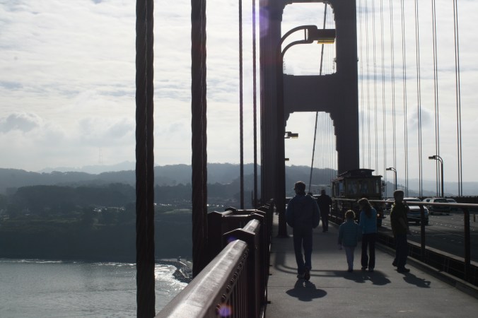 It was December, the sun was warm and the wind just a little breezy. The six of us (two adults, two middle schoolers, a 6-year old and a 4-year old) strolled along the crowded walkway, avoiding bicycles (you can rent a bike and ride it across), photographers, and other walkers.