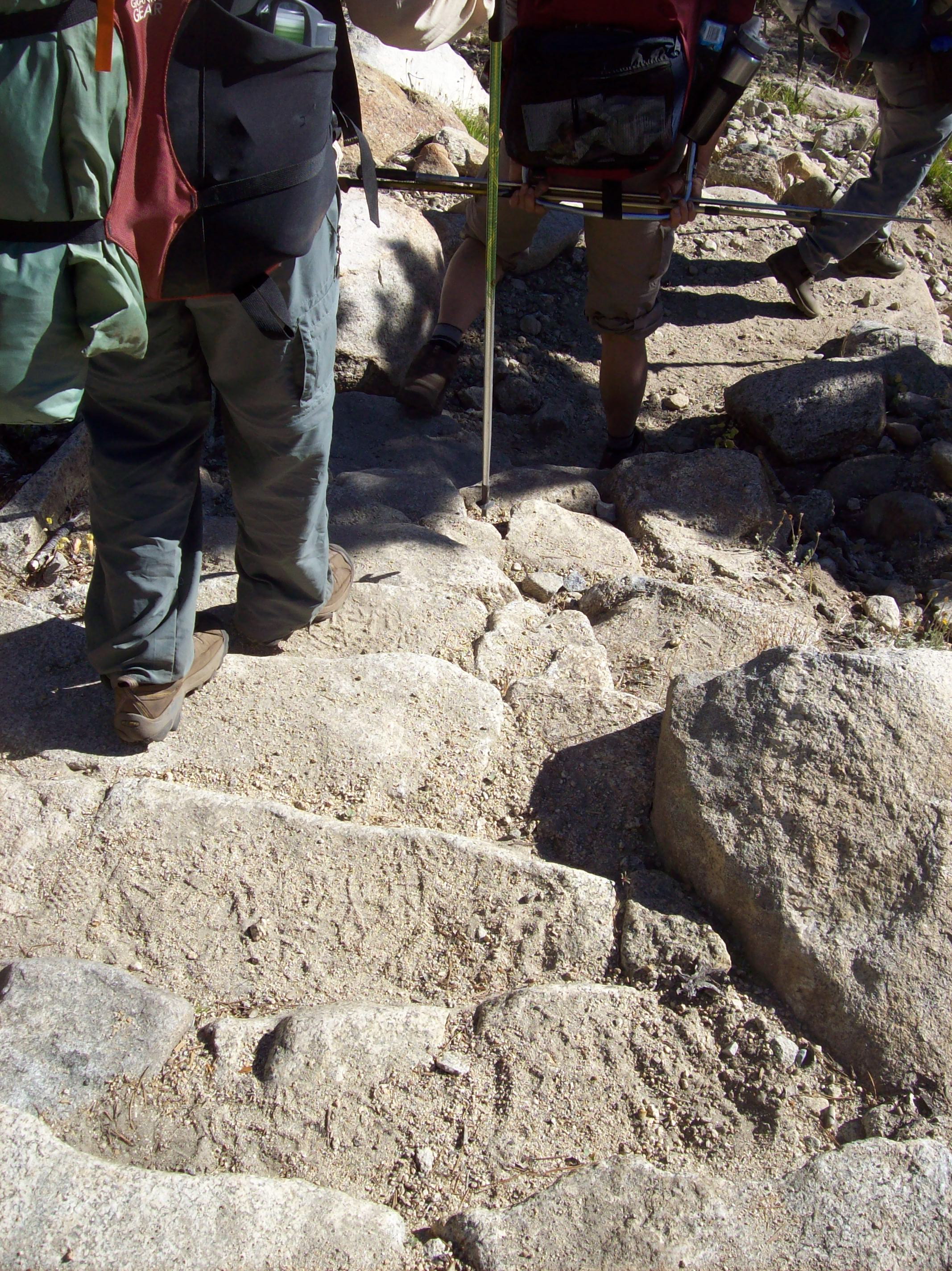 I started to fall and couldn’t right myself. With 40 or so pounds on my back, my center of gravity was off and I fell face first into the dirt. Fortunately, the dirt was soft and except for a ruddy face and smudged sunglasses, I was fine, just tired and a little embarrassed. We were at the end of a 4-mile hike from Lily Pad Lake to Gem Lake on the third day of our backpacking trip.