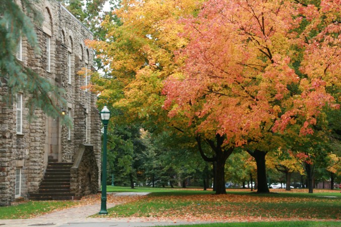 After replacing the tail light, we drove over to my husband’s alma matter where the trees were turning, the rain intermittent, the buildings old but majestic.