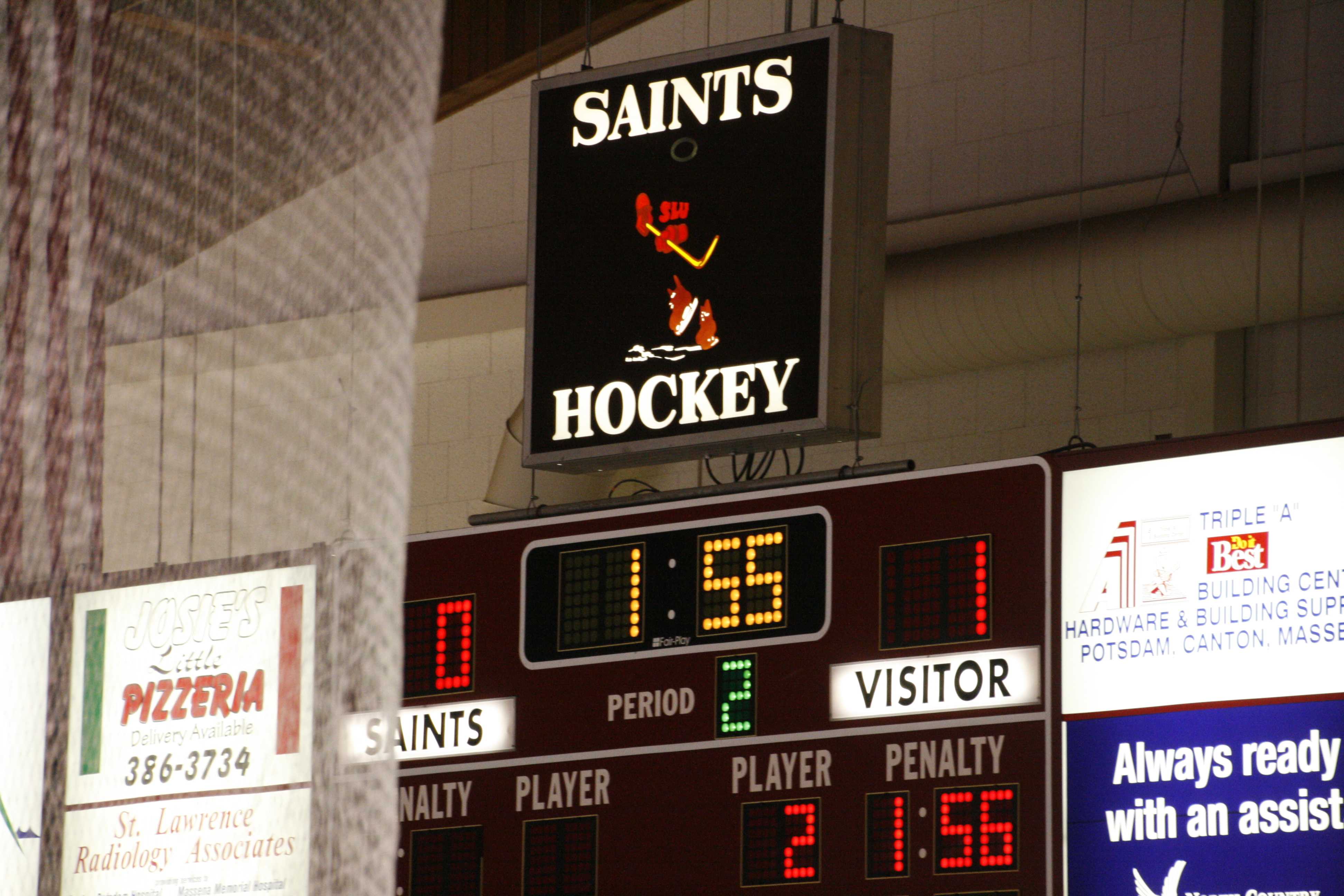 After gluten-free Mexican at the Hot Tamale in downtown Canton, we joined the crowds at Appleton Arena to watch the Saints’ ice hockey team beat Carleton University in overtime (3-2).