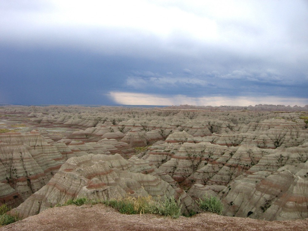 Thunder in BadlandsIf you were driving a stagecoach or on horseback and came across this expanse of arid rock, you might call it a “miserable gully,” but if you’re interested in geological features and you have plenty of water, this 244,000-acre national park in South Dakota is worth exploring.