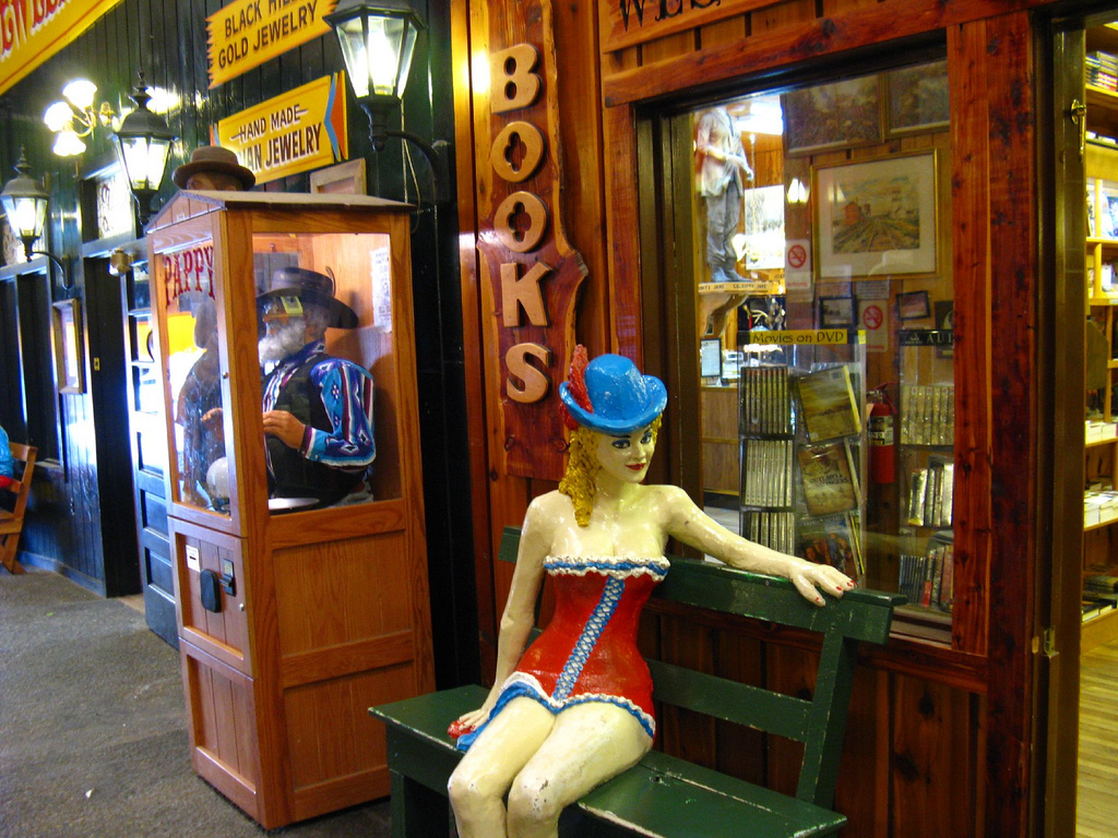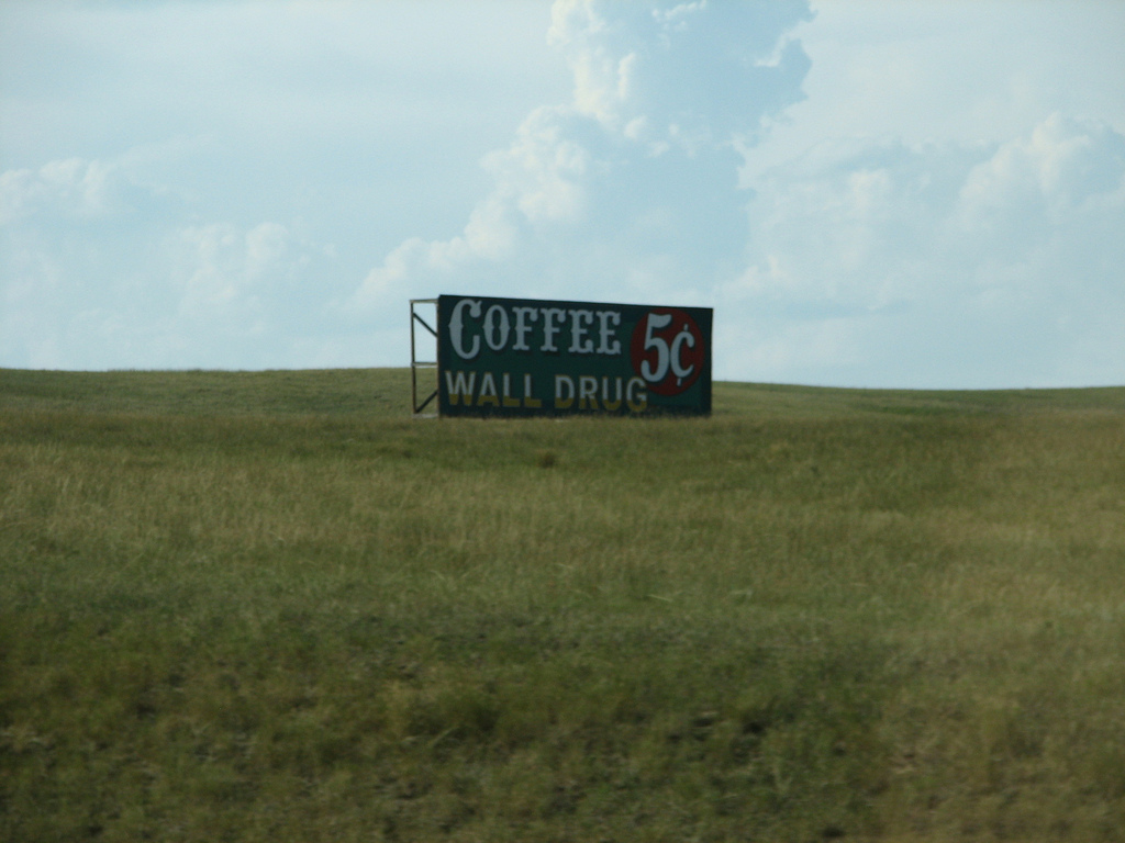 Not because they have free ice water or 5 cent coffee. Not because the food is good or the pharmacy is well stocked. Wall Drug Store is a rambling touristy western bit of roadside Americana. There are shops selling cowboy hats and boots, turquoise jewelry, and laminated placemats just like the ones I had when I was a kid. There are cutouts for picture taking, ice cream for licking, and buffalo burgers to fill your tummy.