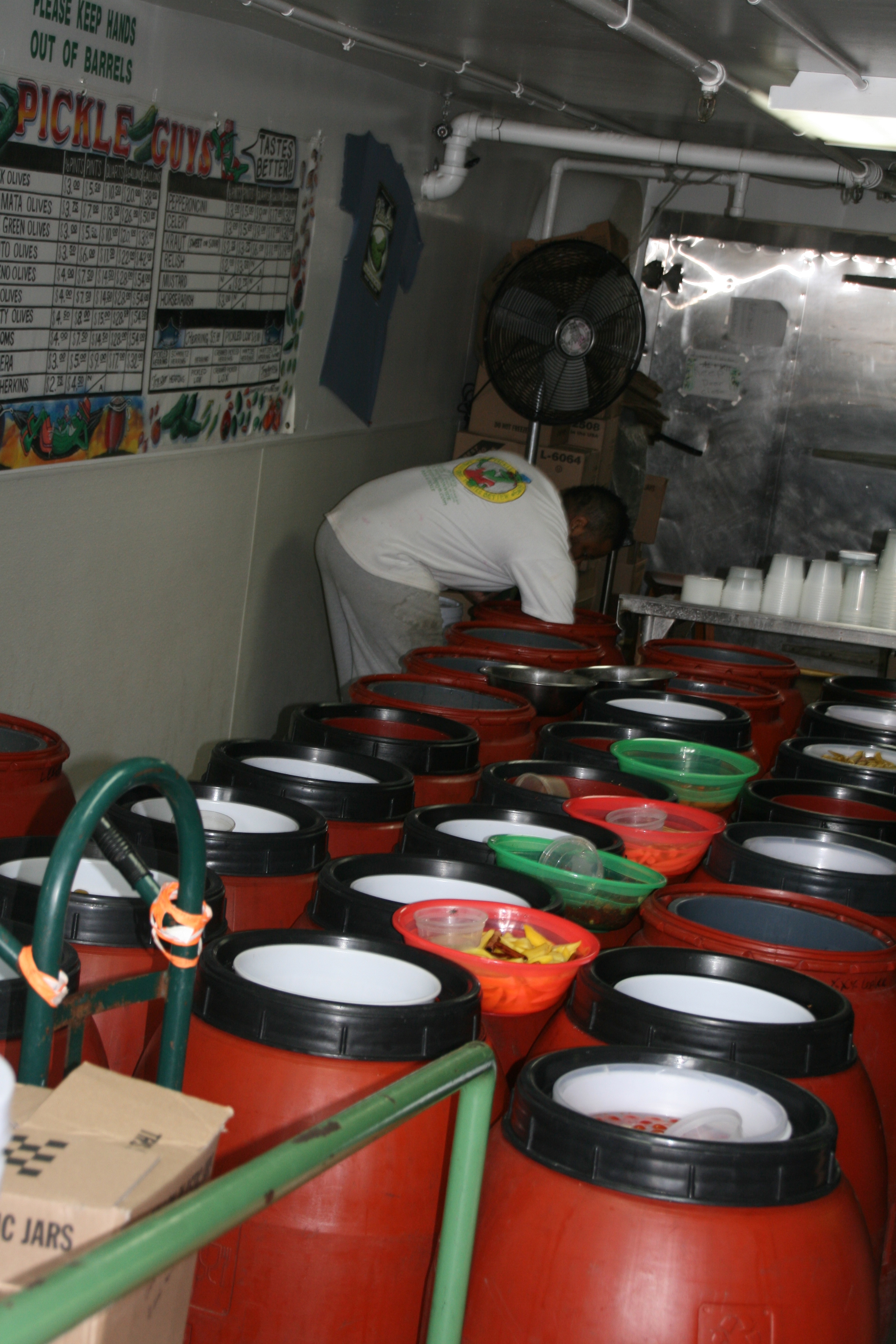 And there were cucumbers: sour and hot, half sour and three quarter sour. I bought the full sour pickle and took a bite. Tart and crisp with just the right bite, it lived up to its reputation.