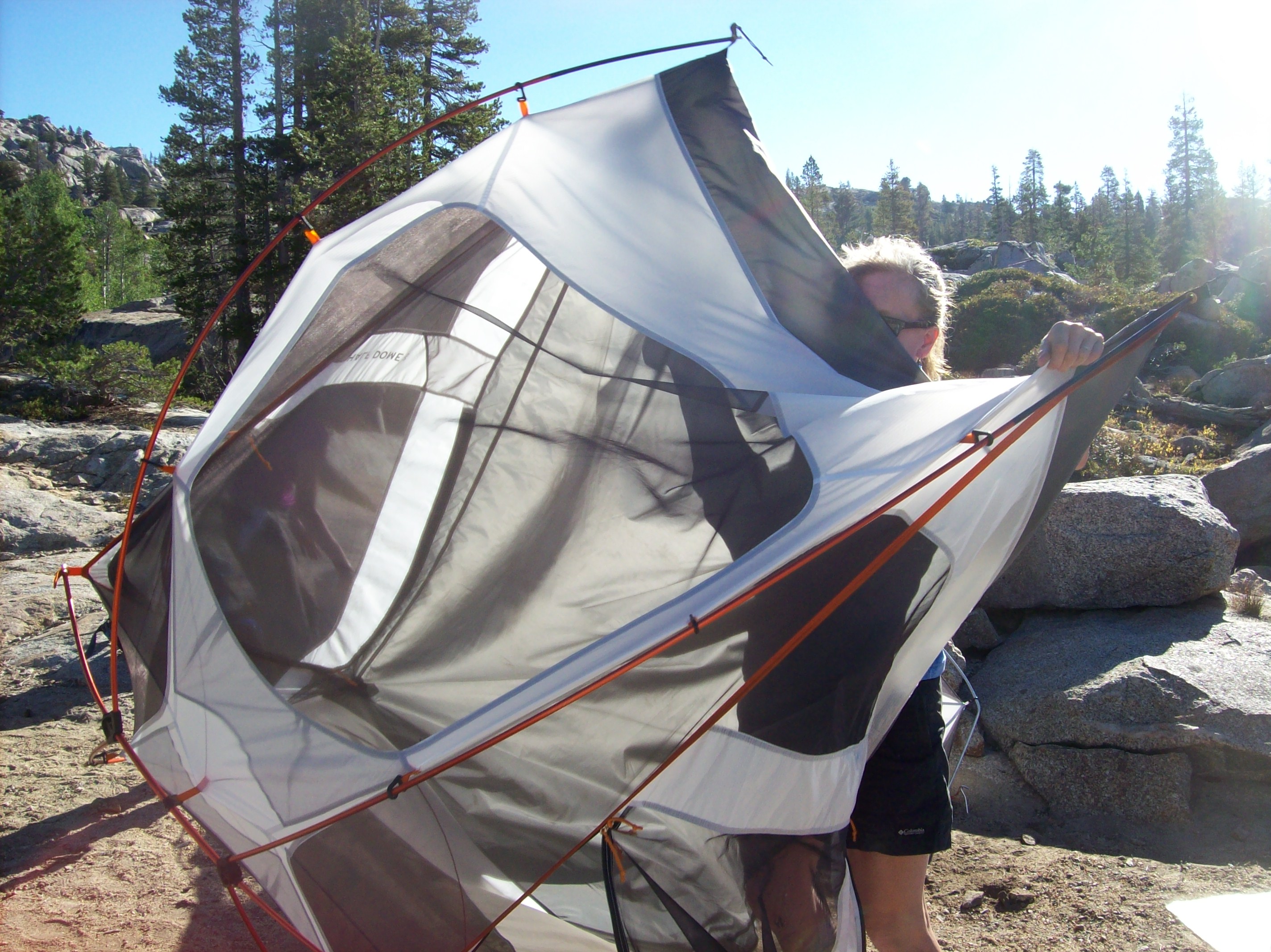 We scattered our tents about between the rocks and enjoyed the quiet of this unpopulated lake, the only sign of civilization, someone’s food hung high on a tree branch over the lake away from any potential hungry bears. We didn’t swim in Y Meadow Lake, but sat by its edge, doing crossword puzzles, reading, and relaxing.